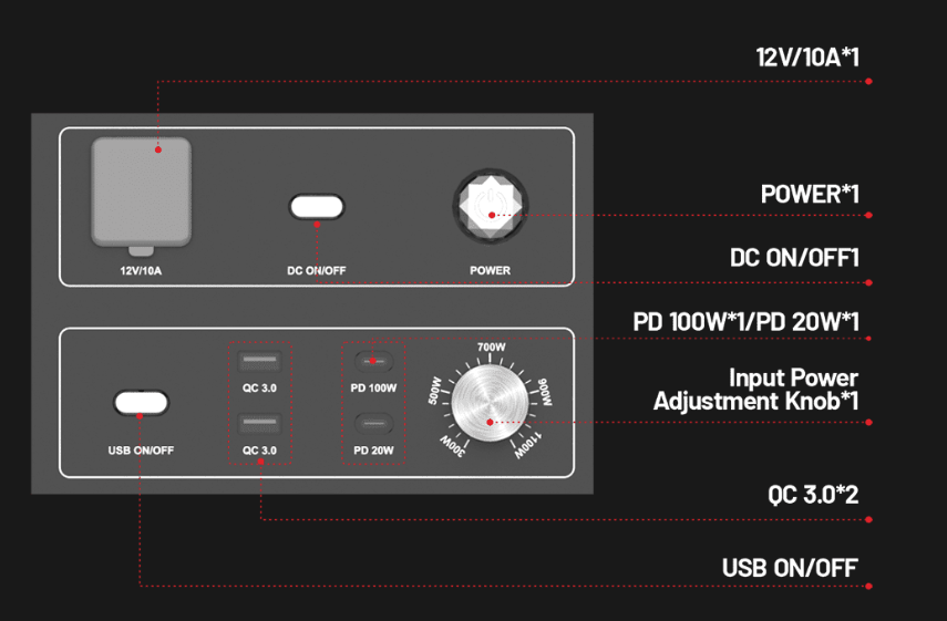 Công suất sạc đầu vào có thể điều chỉnh linh hoạt từ 300W đến 1500W.