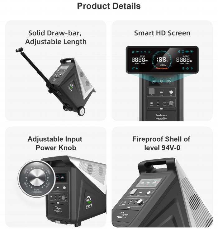 Energipak 3840 là trạm phát điện lithium di động hiệu suất cao được thiết kế để cung cấp điện ổn định trong nhiều tình huống khẩn cấp và thiếu hụt khác nhau. Nó nổi bật với công nghệ pin ưu việt, khả năng điều khiển sạc thích ứng và khả năng chuyển đổi khẩn cấp cực nhanh. Energipak 3840 bao gồm bộ pin LiFePO4 (pin + BMS), bộ biến tần sóng sin thuần túy, mạch DC-DC, mạch điều khiển và mạch sạc.